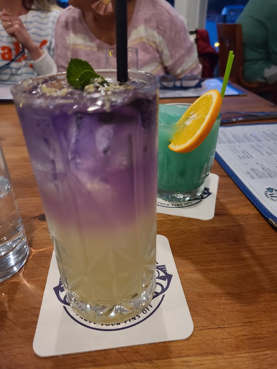 As soon as you step inside, you’re greeted with a relaxed vibe that perfectly captures the essence of island life. The nautical-inspired decor, with its rich blues and beachy accents, immediately makes you feel like you’re dining by the water, even if you’re not seated on their outdoor patio overlooking the scenic views. The staff is friendly, attentive, and always happy to guide you through the extensive menu, which offers a range of options to please every palate.